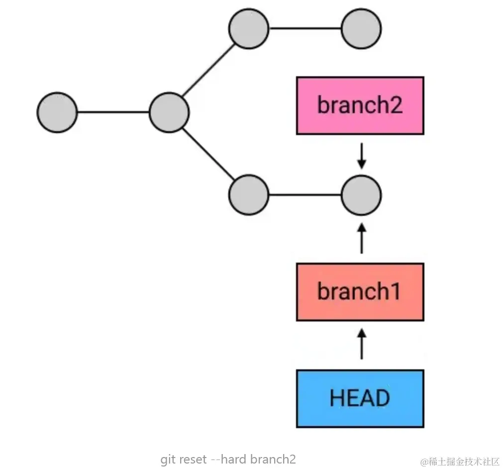 所以同理,reset --hard 不仅可以撤销提交,还可以用来把 HEAD 和 branch 移动到其他的任何地方。