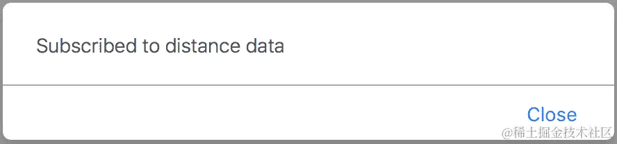 - 单击 Track Distance 按钮后,您应该会看到一个弹出窗口,告诉您 HTML JavaScript 客户端现在已订阅了