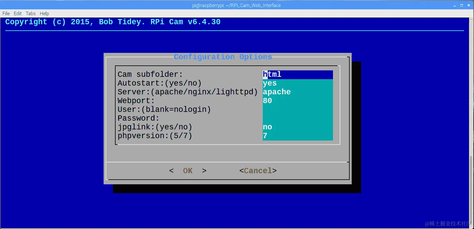 cd RPi_Cam_Web_Interface命令更改目录。 -