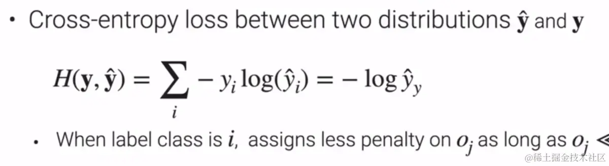 对 y^和 y 做交叉熵,让模型使 H(y,y^) = - log y^ y 足够小 => 就能让模型预测正确的那个分类只够大。