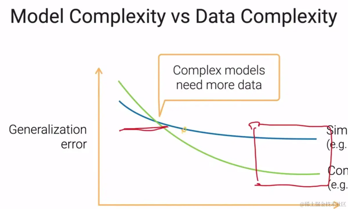 因此,一般模型的复杂程度,要与数据的复杂程度相匹配。