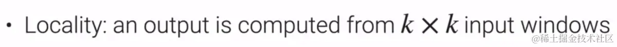 本地性:输入 N x N => 窗口 K x K(k < N),学习时,不在和输入 N x N 相关,而是和窗口 K x K 相关。
