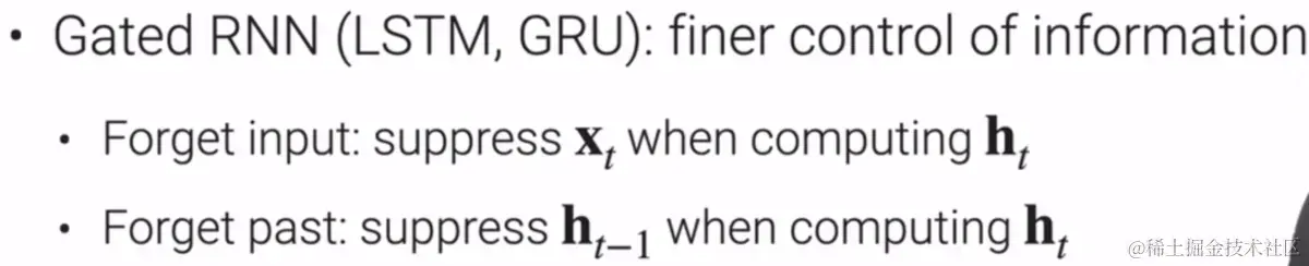 - 忘掉输入,抑制 Xt,认为 Xt 不重要时(比如都是空格,介词等等,没有名词和动词)。