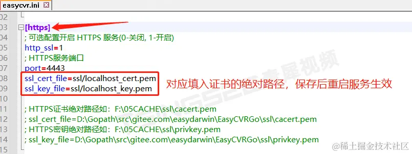 对于需要校验证书的软件或系统,则需要申请正式的nginx证书,并在EasyCVR系统的easycvr.ini文件中配置,如下: