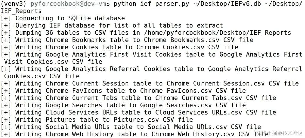 write_csv() 方法非常简单。在这里,我们首先检查是否有数据要写入输出文件。然后,我们在控制台打印状态消息,并创建标题列表以及它们应该被写入的顺序。