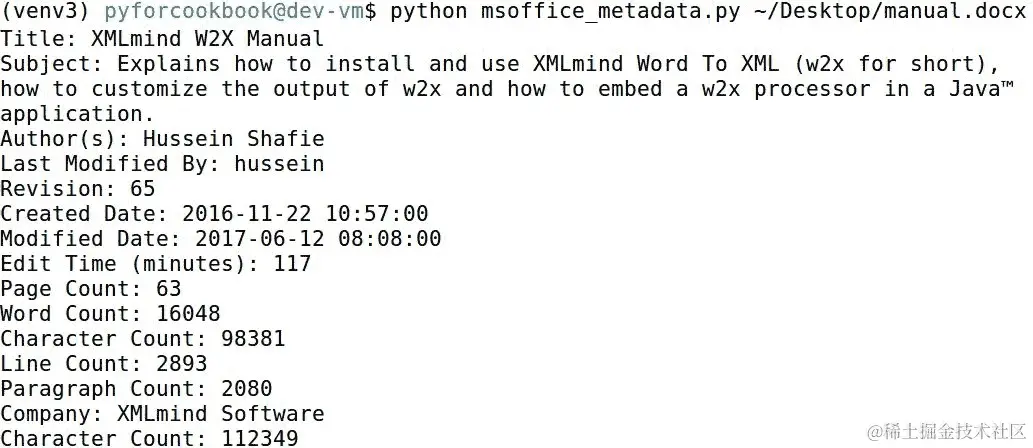 接下来,我们遍历 MP4 文件的嵌入式元数据键值对。对于每个键,我们使用qt_tag字典查找键的人类可读版本。如果值是一个列表,我们将其所有元素连接成一个以分号分隔的字符串。或者,如果值是"geID",我们使用genre_ids字典查找整数,并为用户打印映射的类型。