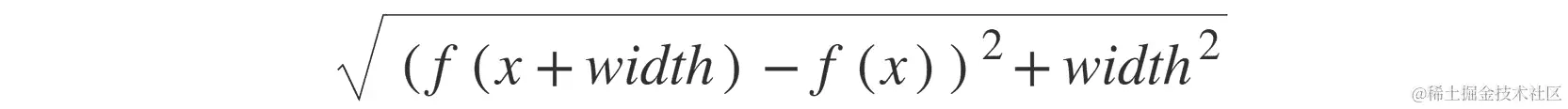 output += sqrt((f(a+(i+1)*width)-f(a+i*width))**2 + width**2)