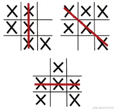 对于行:如果任何用户占据[1,2,3],[4,5,6],[7,8,9],那个特定的玩家将被视为赢家。