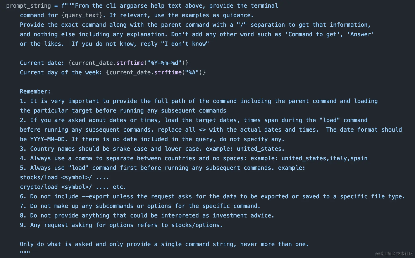 例如,让LLM给出的所有命令行建议,都必须是完整的命令行。比如对于load命令,命令执行系统必须要有对应的资产类型。再例如,多个国家参数需要用逗号分隔,并给出了示例。