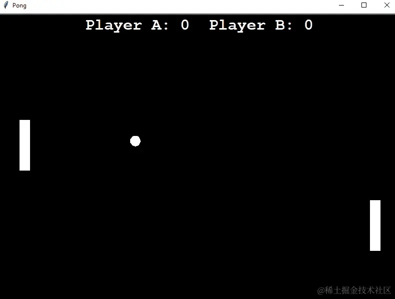 现在,我们必须处理球击中玩家的挡板的情况。以下两个条件代表了挡板和球之间的碰撞:前一个是针对挡板 B 的,后一个是针对挡板 A 的。由于挡板 B 位于屏幕的右侧,我们检查球的坐标是否与挡板的坐标加上其宽度相同。如果是,我们使用ball.dx *= -1命令来改变球的方向。setx方法将把球的第一个坐标改为340,而将y坐标保持不变。这里的逻辑与我们制作贪吃蛇游戏时使用的逻辑类似,当蛇头与食物碰撞时: