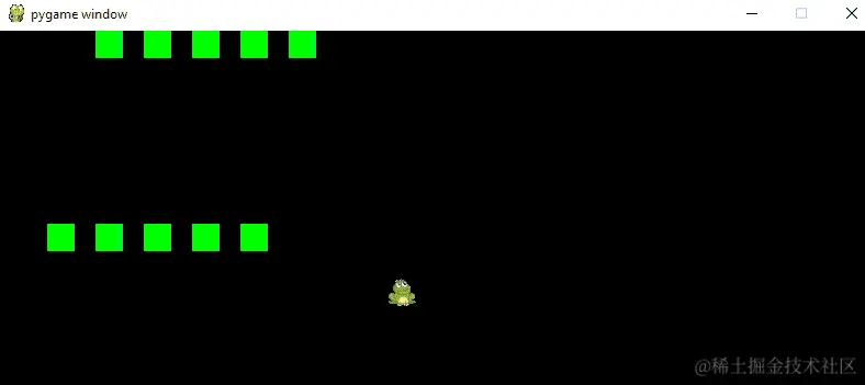 在前面的代码行中,我们使用pygame.display模块创建了一个surface对象。然后,我们将两个图像——snake.png和frog-main.png——加载到 Python 项目中。convert()方法将改变渲染对象的像素格式,使其在任何表面上都能完美工作。