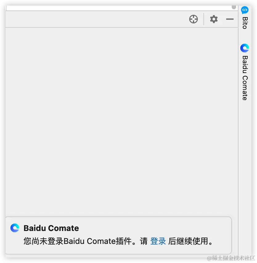 重启之后我们在 IDEA 的右边栏可以看到 Baidu Comate 以及登录提示,这个插件要登录自己的百度账号后才可以使用。