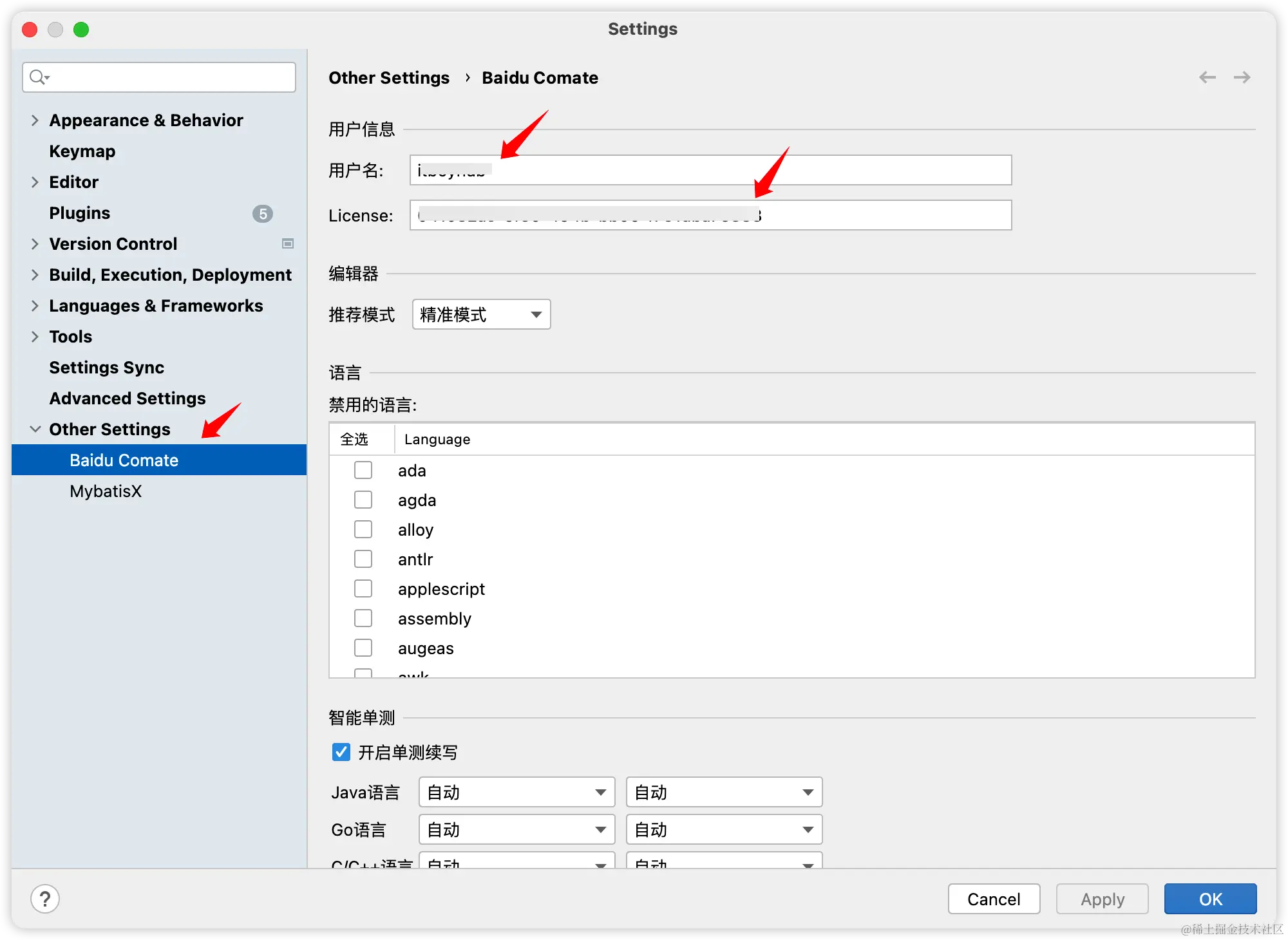 登录百度账号之后,会在 comate.baidu.com/zh/user 页面拿到自己的一个 License,然后在 IDEA 中配置一下用户名和 License,就可以使用了 Comate 了。