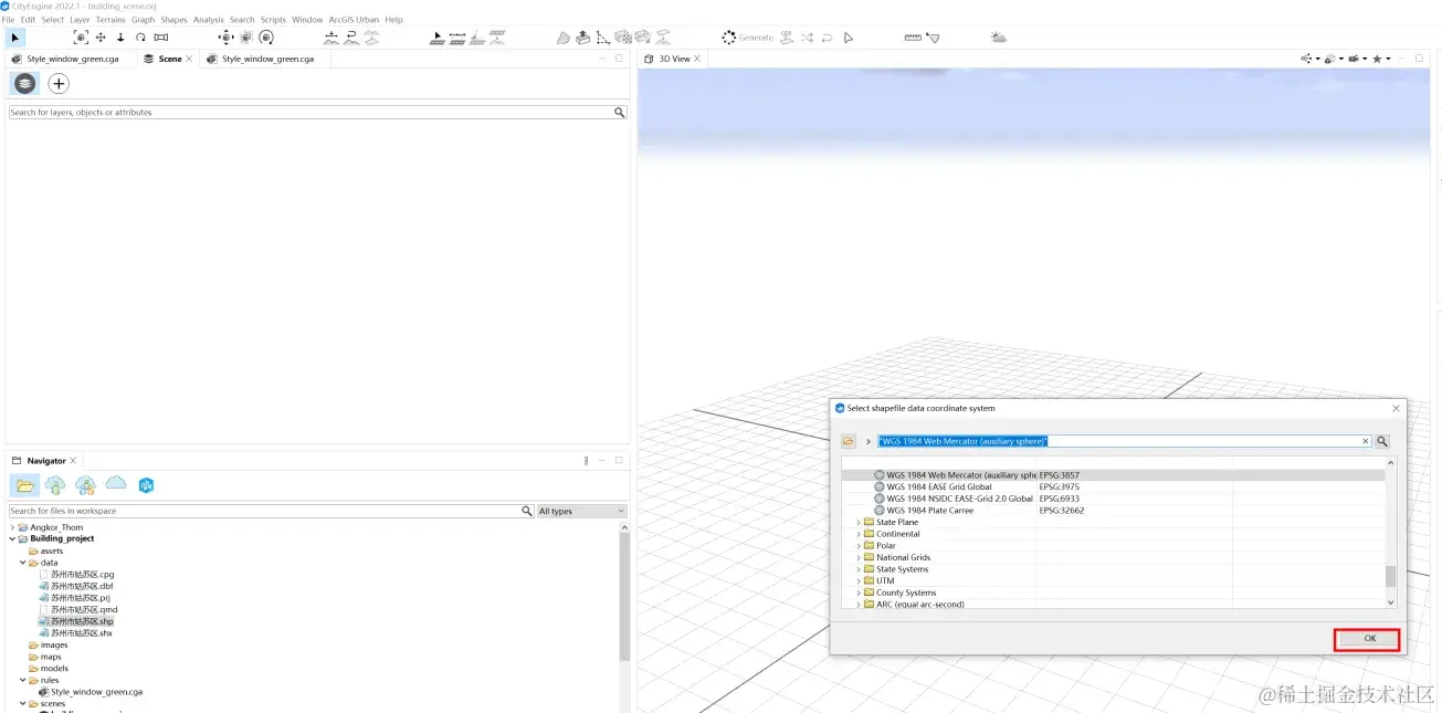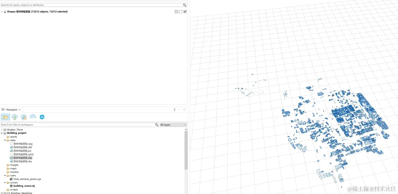 接下来就是建筑生成,将数据拖进之前创建的”building_scene.cej“场景中。