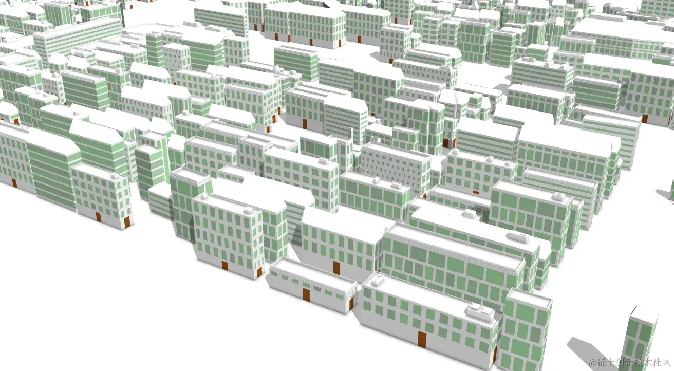 第二种是通过读取我们之前在数据层面设定的建筑高度,通过“attr height =10”,可以链接到矢量数据的高度属性。如果我们的高度是基于真实数据设置的,我们就可以赋予真实的楼高。