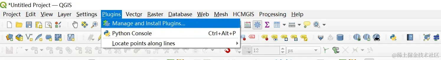 软件安装完毕,打开QGIS,并在“Plugings“点击”Manage and Install Plugins“下载并安装对应插件。