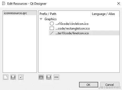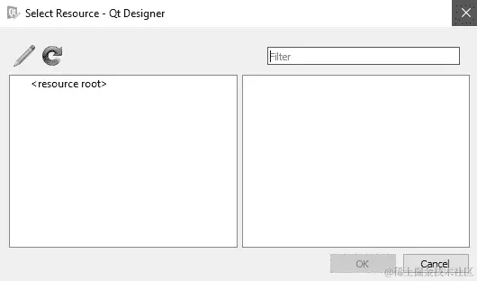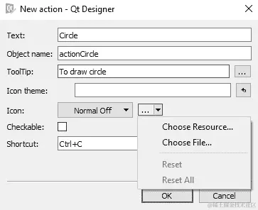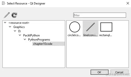 在 pixmap 属性中,从两个选项中选择 Resource 和 Choose File,选择 Choose File 选项,浏览您的磁盘,并选择