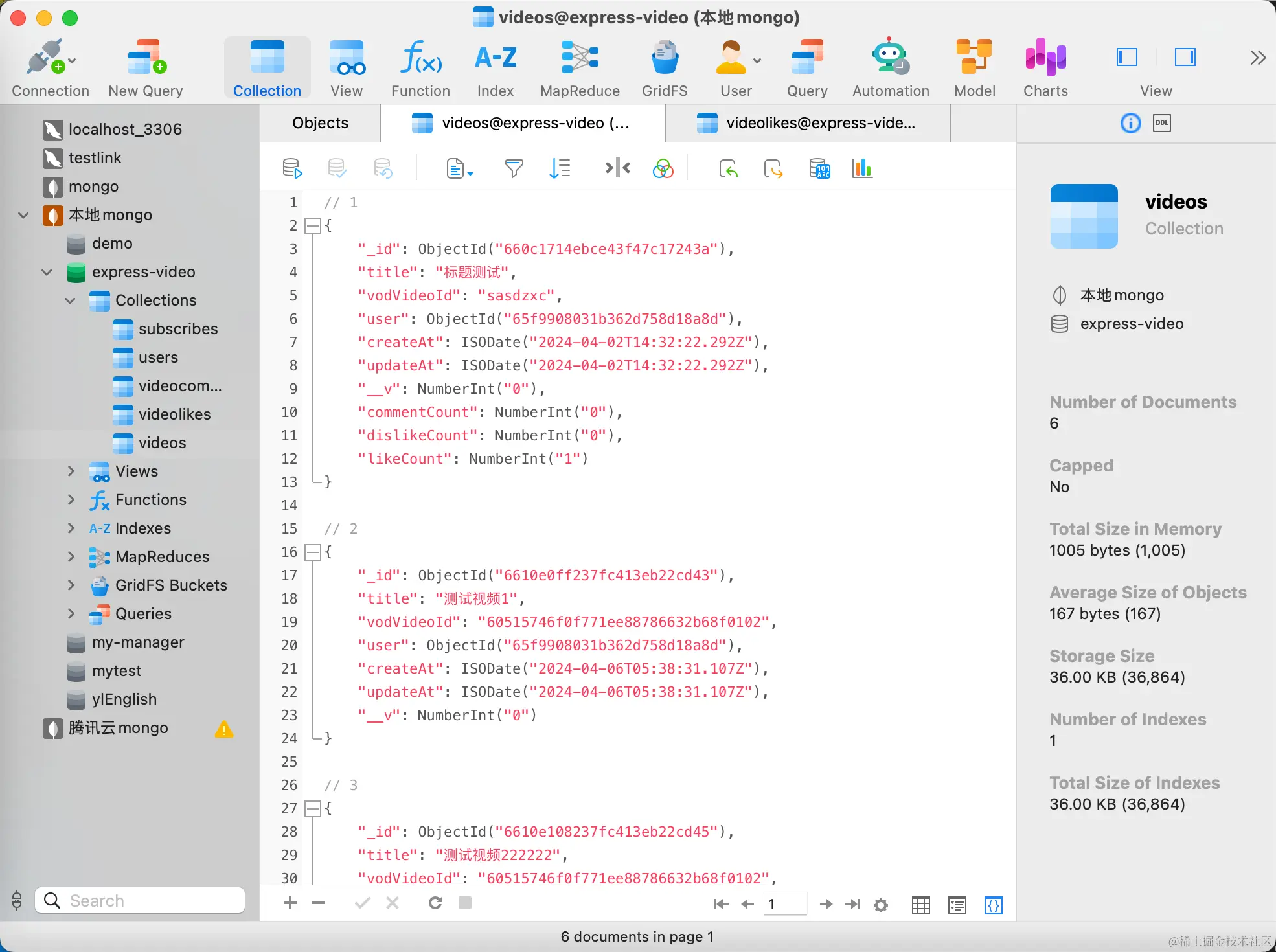 我们需要一个模型来存储用户对视频的喜欢或不喜欢的状态。我们创建了videoLikeModel: