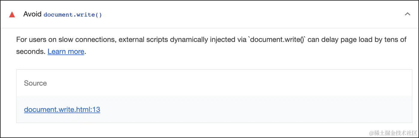如果您之前曾经运行过 Lighthouse 测试,那么您很可能已经看到过审核"避免 document.write()":