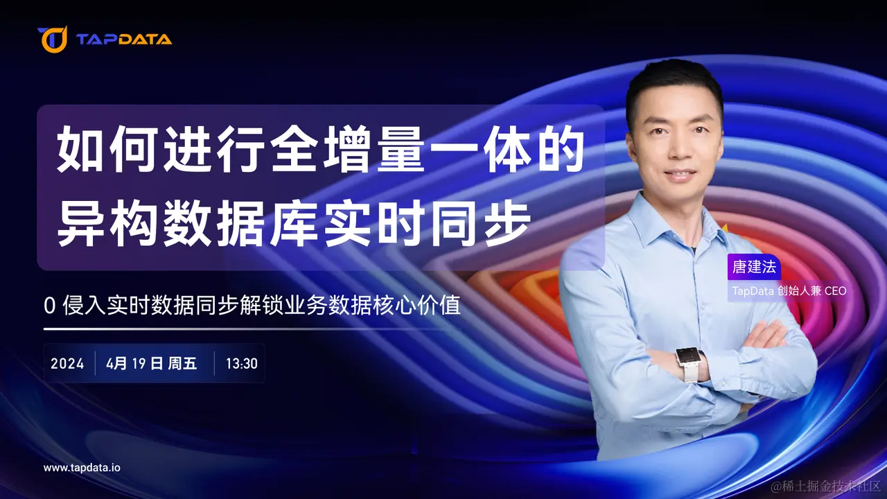 🗓 4月19日(周五)13:30,Tapdata 直播间与您相约,Tapdata 创始人兼 CEO 唐建法(TJ),在线分享 TapData + 现代化数据库的无限潜能,以 Oracle → MongoDB 的持续数据同步任务为例,从功能特性到 Demo 演示,为您提供详细的产品能力展示,同时开放线上问答环节,期待与您的实时互动。