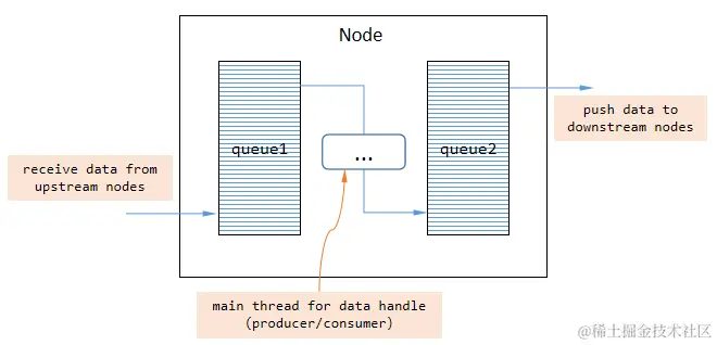 - SRC节点:源节点,数据被创建的地⽅(内部只有⼀个队列,⽤于缓存被推送到下游节点的数据)。