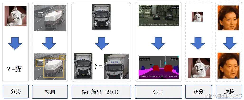 - 推理:对图像进⾏深度学习推理,如检测、分类或特征提取。
