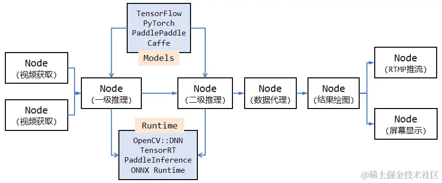 你只需准备好模型并了解如何解析其输出即可,推理可以基于不同的后端实现,如 OpenCV::DNN(默认)、TensorRT、PaddleInference、ONNXRuntime 等,任何你喜欢的都可以。