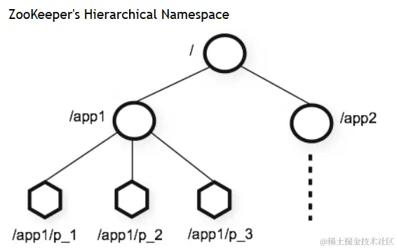 ZooKeeper 提供的命名空间与标准文件系统的命名空间非常相似。名称是用斜杠 (/) 分隔的路径元素序列。ZooKeeper 命名空间中的每个节点都由路径标识。