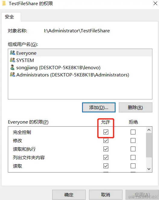 点击确定-->勾选 “完全控制”,先点击应用,再点击确定就可以了 :