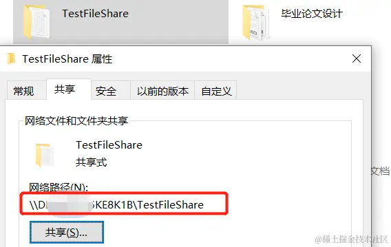 然后点击共享,就可以看到你的共享路径:复制一下路径