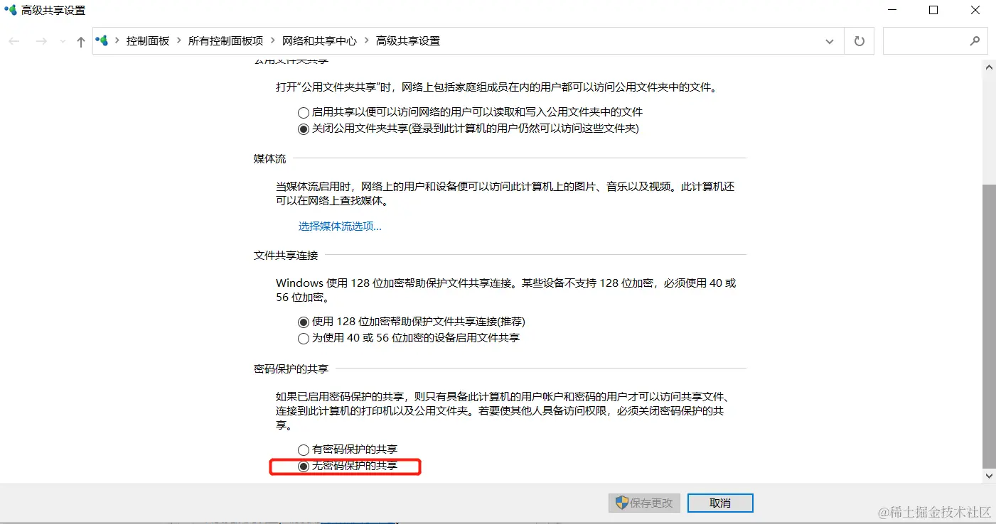 我是直接修改设置,不用认证,可以任何人访问了:打开控制面板\所有控制面板项\网络和共享中心\高级共享设置 进行设置