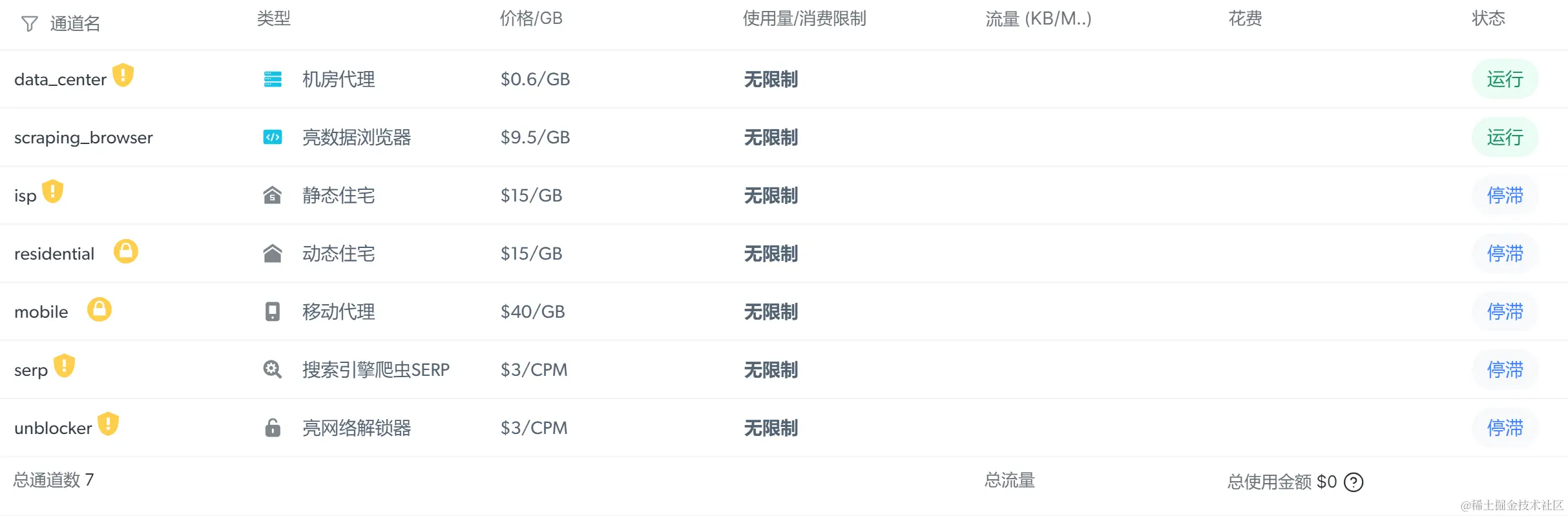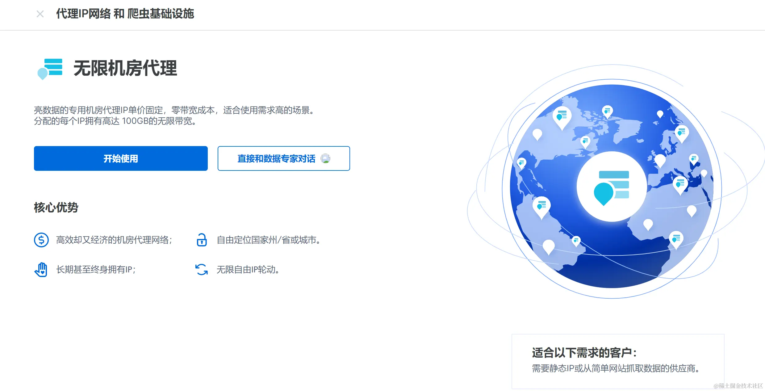 无限机房代理,亮数据的专用机房代理IP单价固定,零带宽成本,适合使用需求高的场景。分配的每个IP拥有高达 100GB的无限带宽。