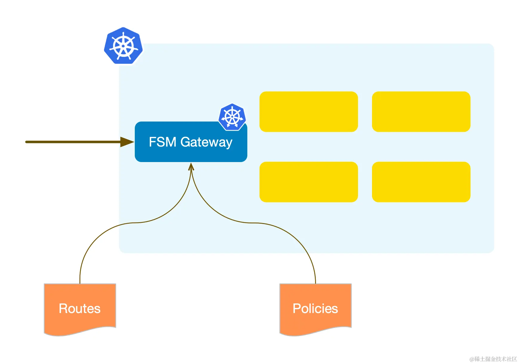 对于 Kubernetes 的入口流量管理,常见的有如 Ingress Controller、Gateway API。作为服务网格 FSM 组件之一的 FSM Gateway 是一个开源的 Kubernetes Gateway API 实现,它使用可编程应用引擎 Pipy 作为代理配置路由和策略来管理入口流量。关于 FSM Gateway 的使用,可以查看之前的 系列文章。