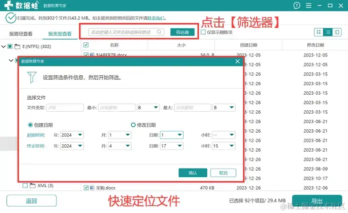 提示:如果扫描到的文件结果比较多,直接在筛选器中定位文件有利于提高选择效率。