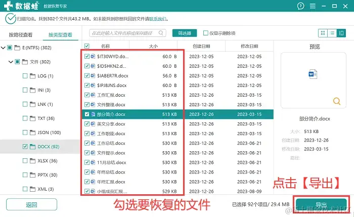步骤4:确认所有需要恢复的文件都勾选完毕后,直接点击 【导出】,并选择导出后文件的保存位置即可。
