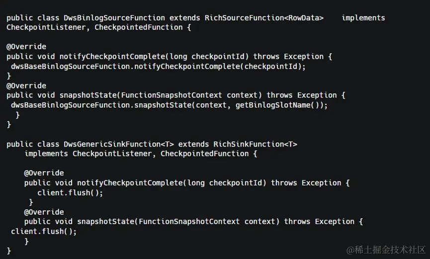 每个算子implements flink的指定接口,将计算中间结果持久化下去,并做到功能幂等,即可接入flink灾难恢复处理能力,做到job的端到端数据exactly once。
