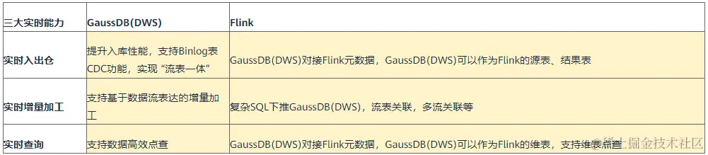 GaussDB(DWS)结合Flink的能力构建,涵盖以下四大功能: