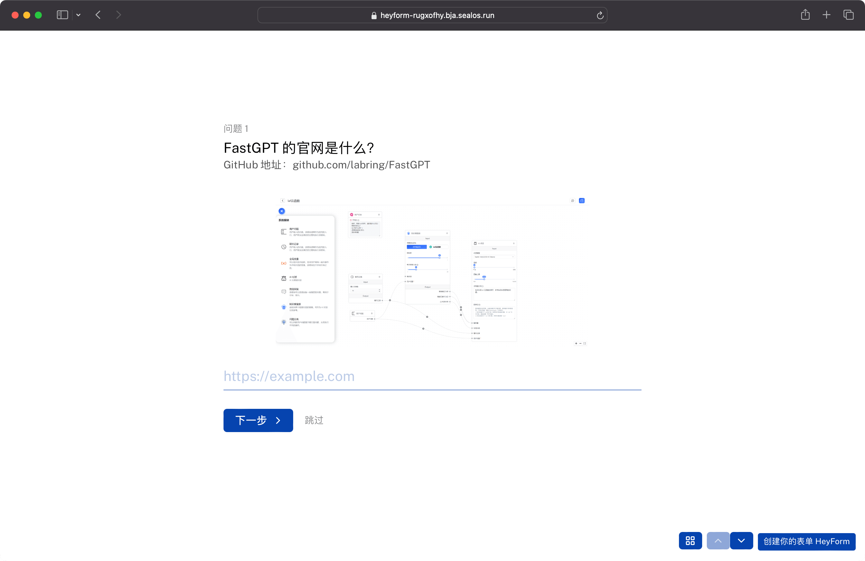 这时点击外网地址即可打开 HeyForm 的可视化界面: