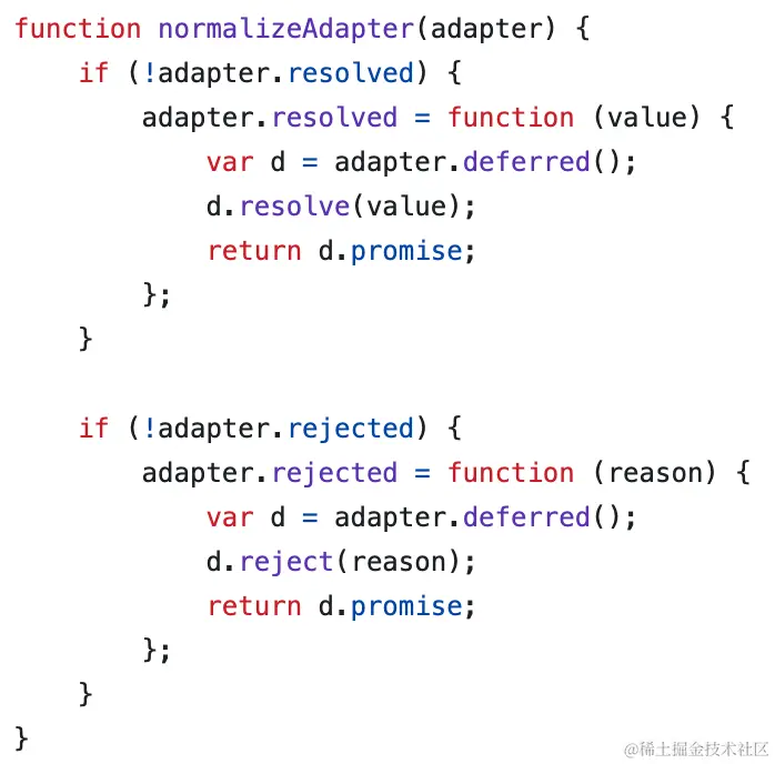 如果提供的适配器,没有resolved和rejected的话,它会自己生成一个,所以我们只要提供deferred方法即可。