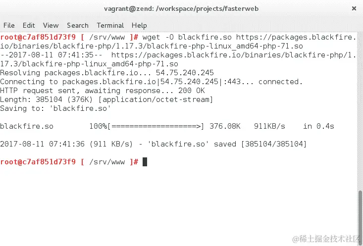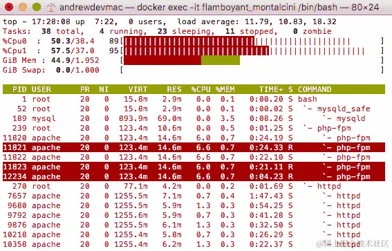 然后,打开另一个终端窗口,并将其连接到我们的Linux for PHP Docker容器:
