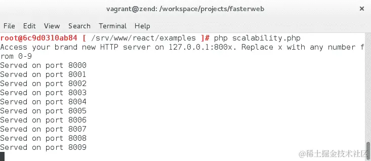 再次,你可以看到ReactPHP有多么强大,只需几行代码就足以创建一个可扩展的 Web 服务器。