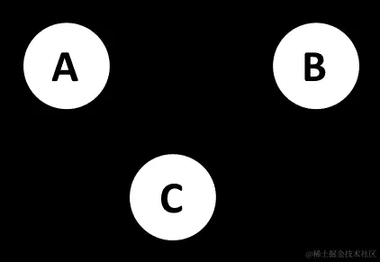 - 无向边:无向边是两个顶点之间没有方向的连接。这意味着边满足双向关系。下图是无向图的一个例子,其中 A 与 B 连接的方式是(A,B)和(B,A)是相同的: