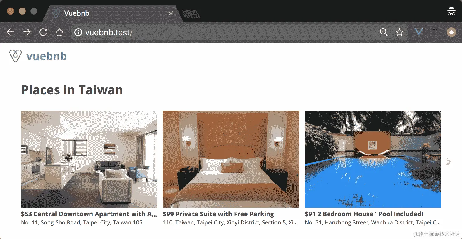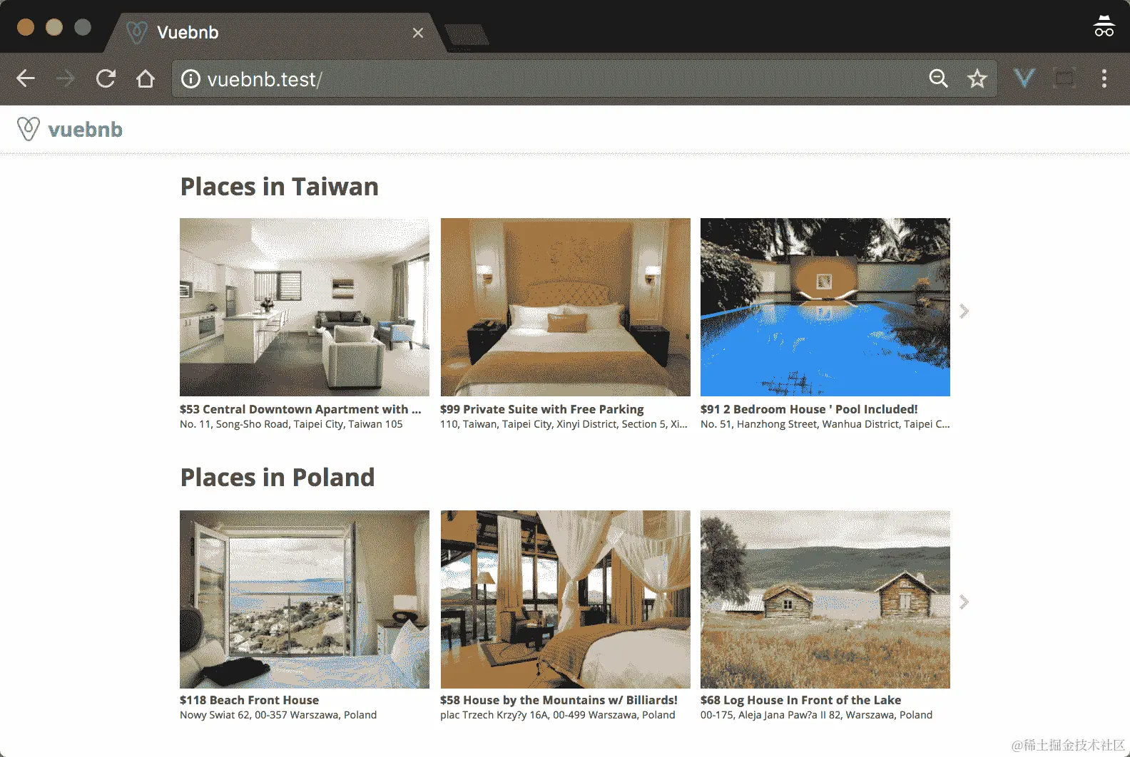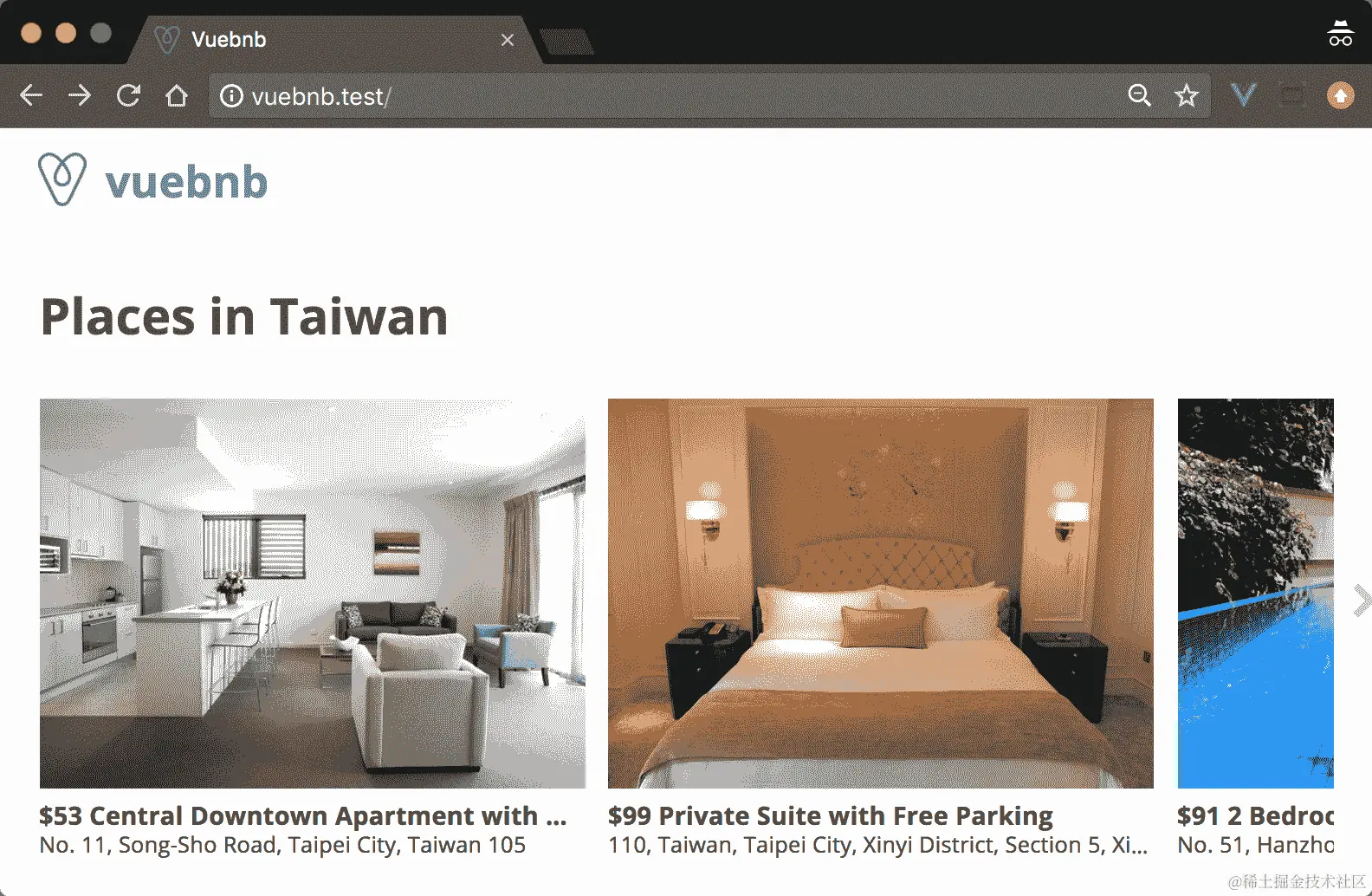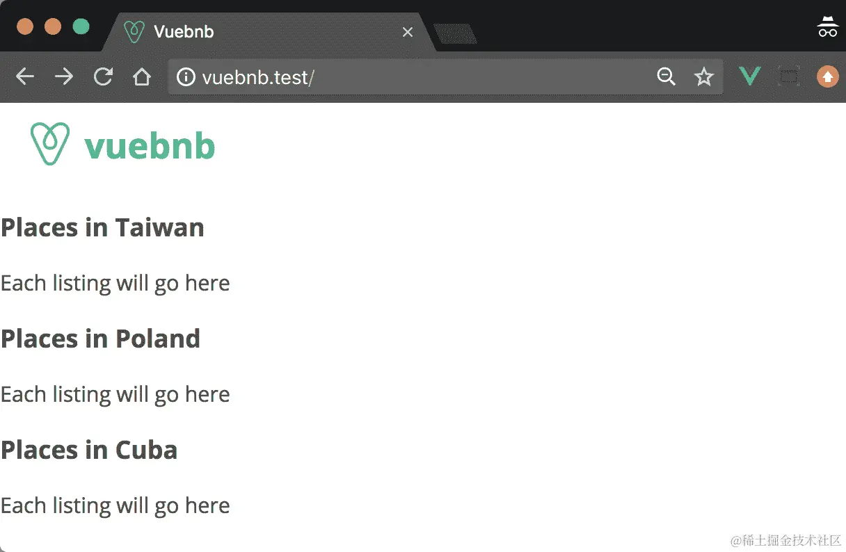 图 7.1。Vuebnb 的首页