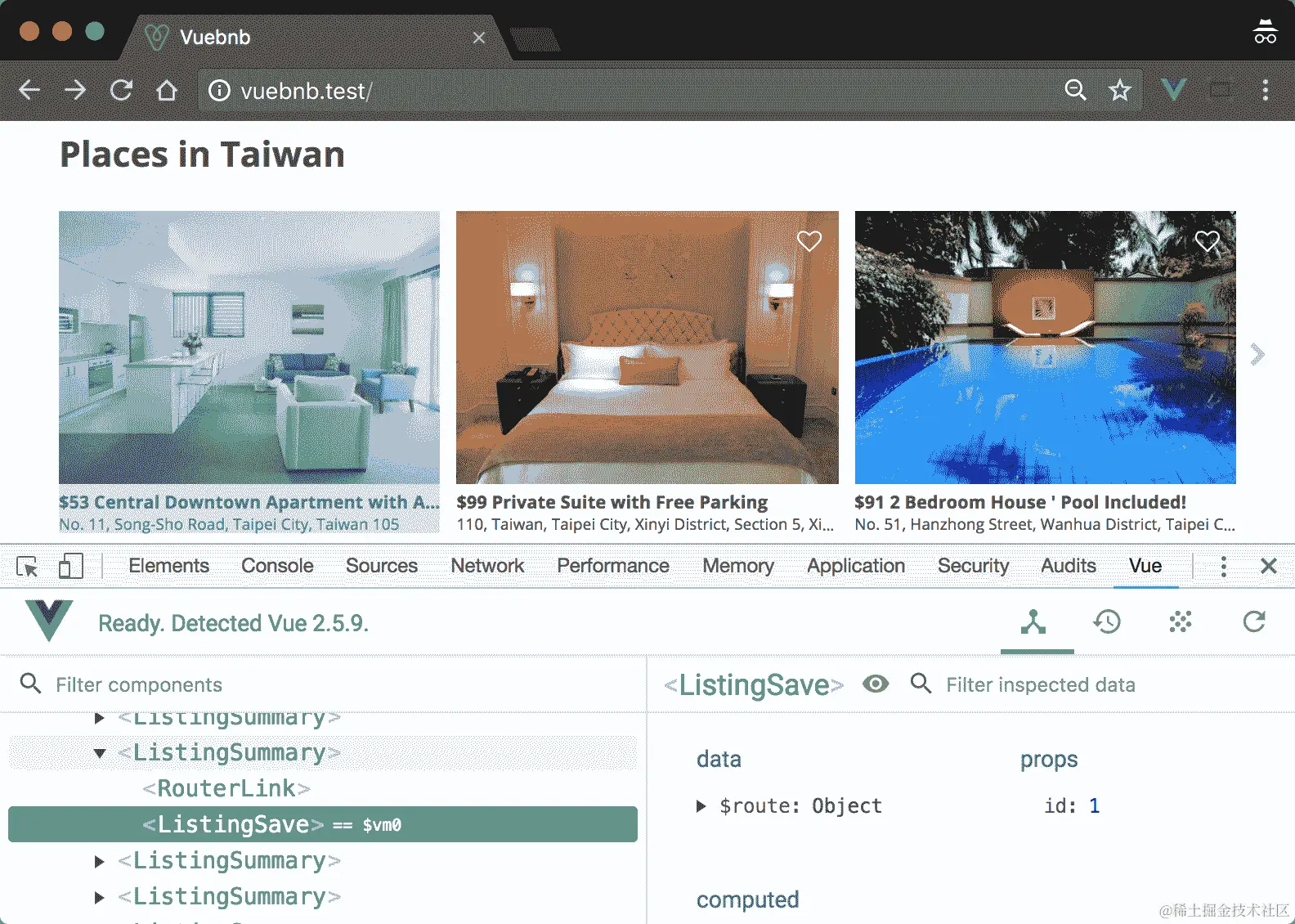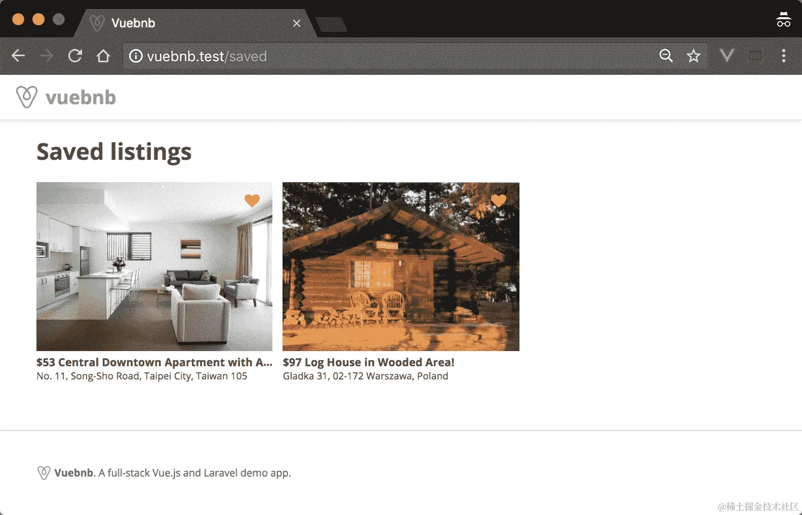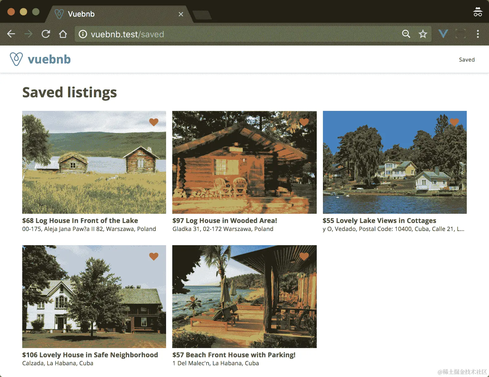 图 7.1。Vuebnb 的首页