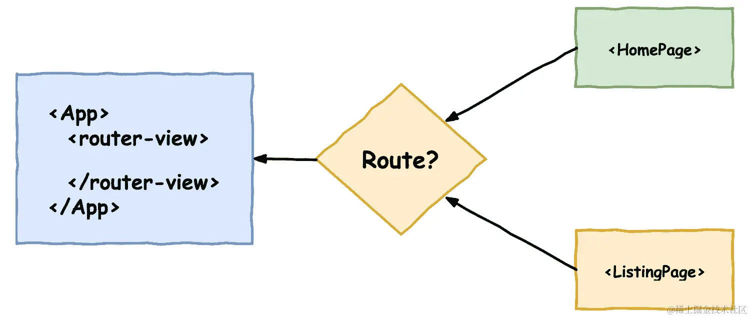 使用 Vue Router,应用程序的不同页面由不同的组件表示。当您设置 Vue Router 时,您将传递配置,告诉它哪个 URL 映射到哪个组件。然后,在应用程序中点击链接时,Vue Router 将交换活动组件,以匹配新的 URL,例如:
