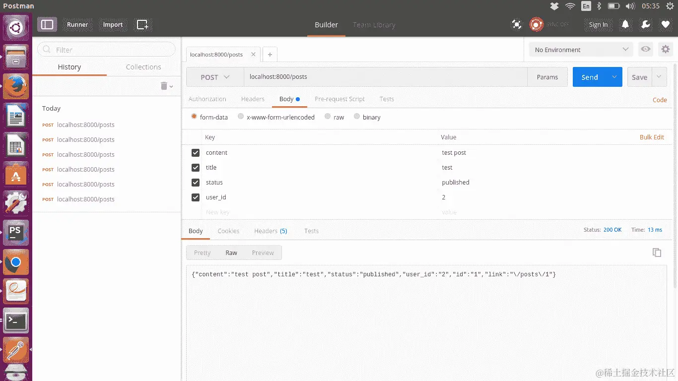 首先,它检查 URL 是否符合格式:/posts/{id},然后检查Request方法是否为PATCH。在这种情况下,它调用updatePost()方法。updatePost()方法通过getParams()方法以逗号分隔的字符串形式获取键值对。然后进行查询,绑定值和postId。这与INSERT方法非常相似。然后在条件块中,我们回显更新的记录的 JSON 编码形式。这与我们在创建帖子和获取单个帖子的情况下所做的非常相似。