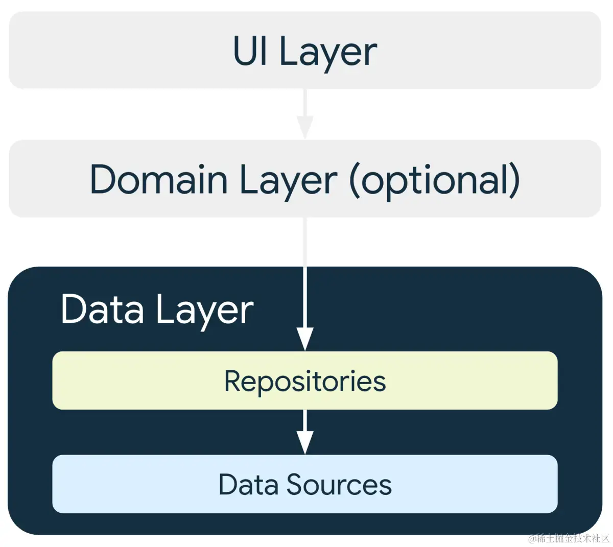 下图展示了 Room 作为数据源如何融入本课程中推荐的总体架构。Room 是一个数据源。