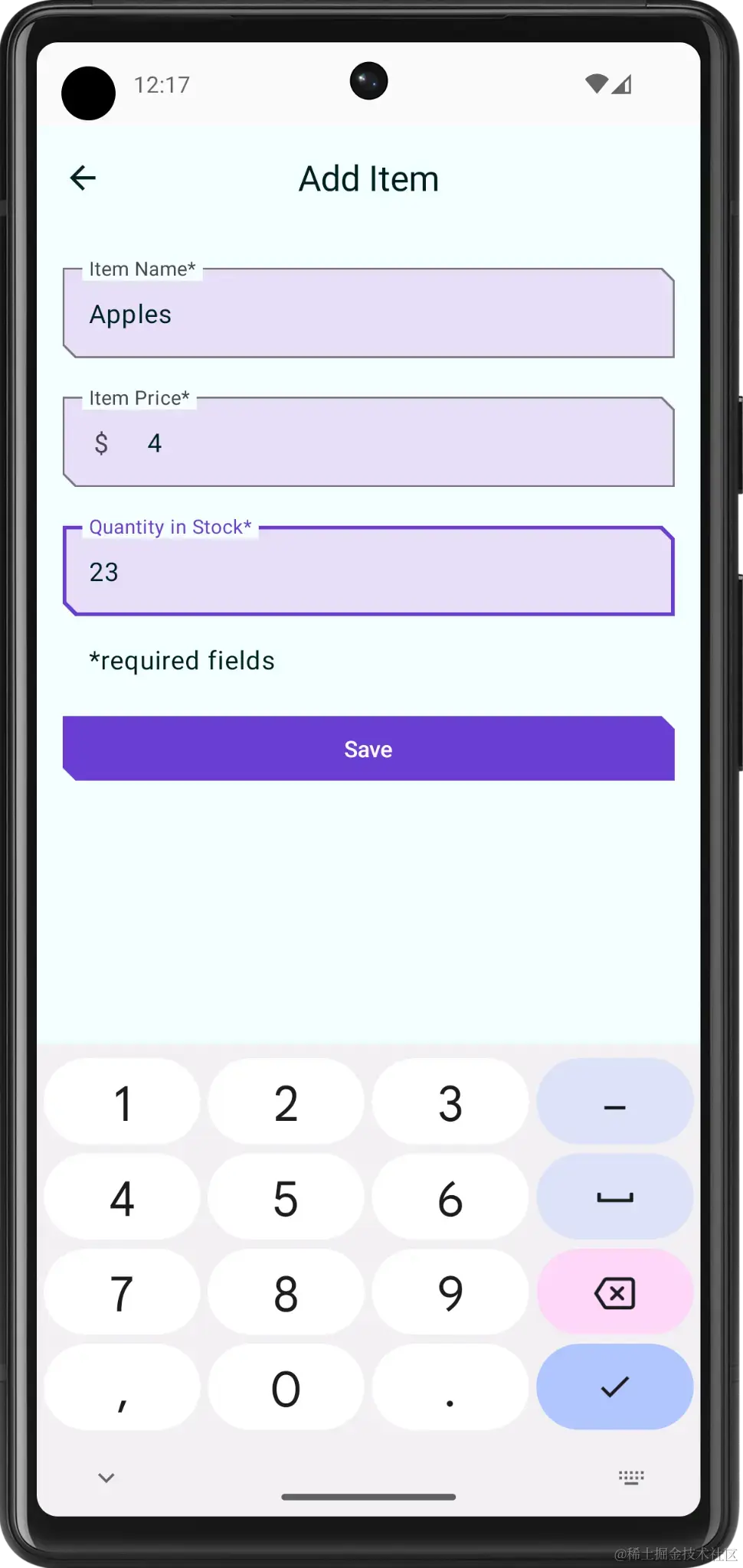 点按 Save。Add Item 界面未关闭,但您可以使用返回键返回。保存功能未实现,因此系统不会保存商品详情。