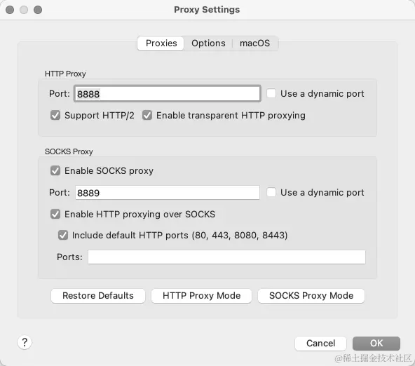 配置 http-proxy,打开菜单 Proxy -> Proxy Settings 勾选 HTTP Proxy,并输入端口号,自己定义即可,如下图