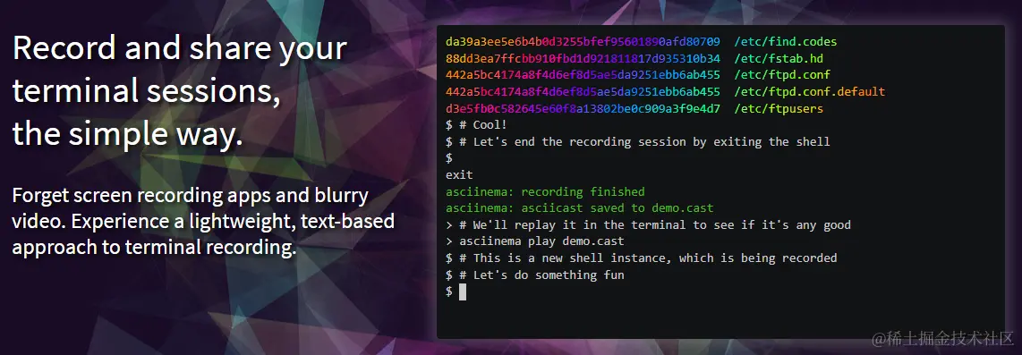 - 轻松嵌入:轻松将 asciinema 播放器嵌入到您的博客文章、项目文档或会议演讲的幻灯片中 。